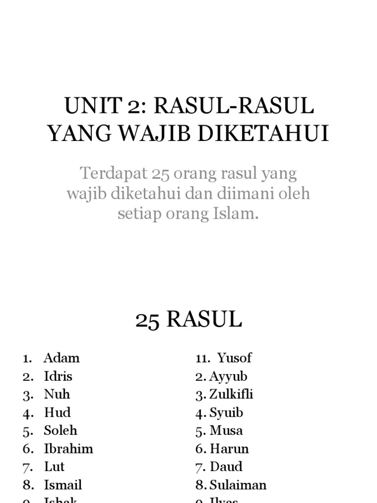 Unit2 Rasul Rasul Yang Wajib Diketahui Pdf